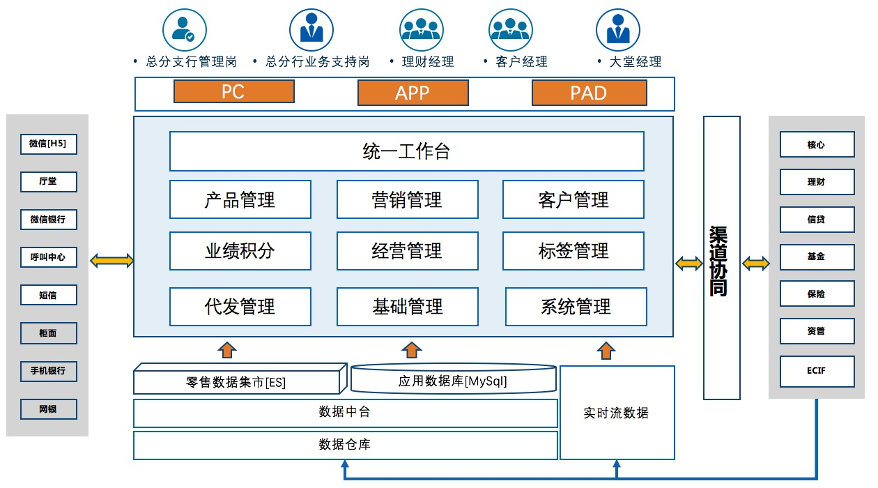 建設(shè)大零售運(yùn)營(yíng)平臺(tái)旨在建設(shè)“管產(chǎn)品、管客戶、管客戶經(jīng)理、管營(yíng)銷、管業(yè)績(jī)、管經(jīng)營(yíng)”的數(shù)字化綜合平臺(tái),實(shí)現(xiàn)全客戶、全產(chǎn)品、全流程、全渠道的客戶運(yùn)營(yíng)體系。