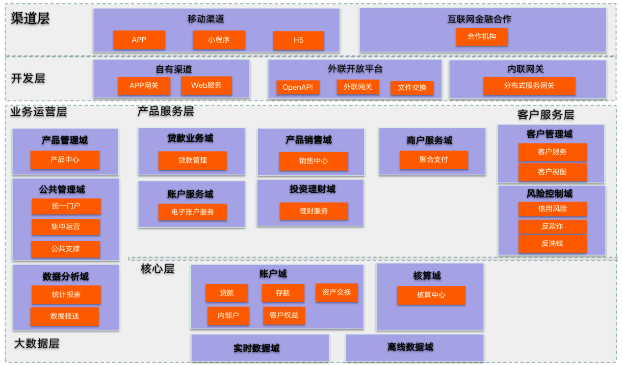 能支持8大功能,包括流量整合共享,金融產品、行業應用可復用共享,第三方合作渠道基礎,風控管理及征信分析,低成本聚合支付通道,多維度客戶信息畫像,數據清洗、格式化及再挖掘,二三類賬戶的核算和管理;